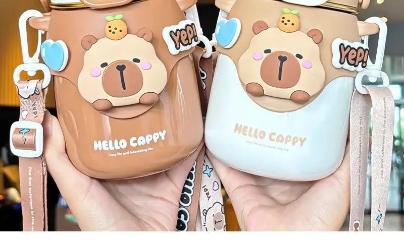 High Quality Capybara 316 Stainless Steel Thermos Bottle with Adjustable Straps Cup Large Capacity Cute Boy Girl Straw Thermos Cup