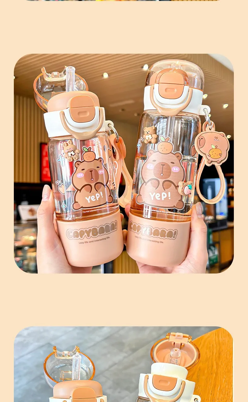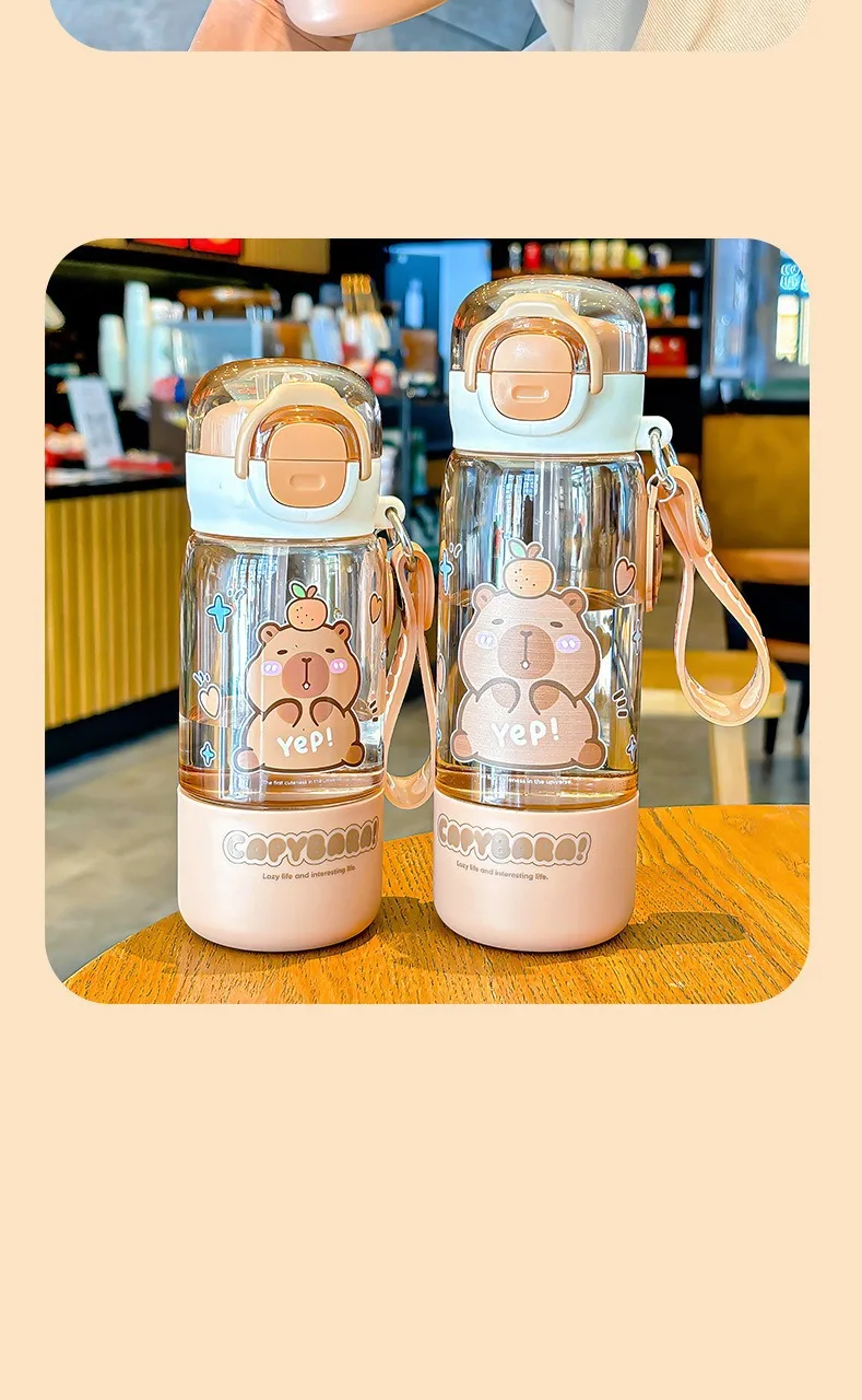 Portable Spring Lid Drink Cup With Straw Capybara Creative Cartoon Drinkware Double Opening Plastic Kids Capybara Bottle Gift