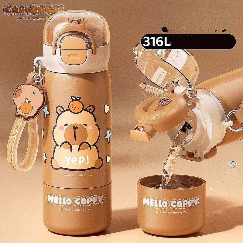 Cute Capybara Cartoon Thermos Cup 380ml water bottle